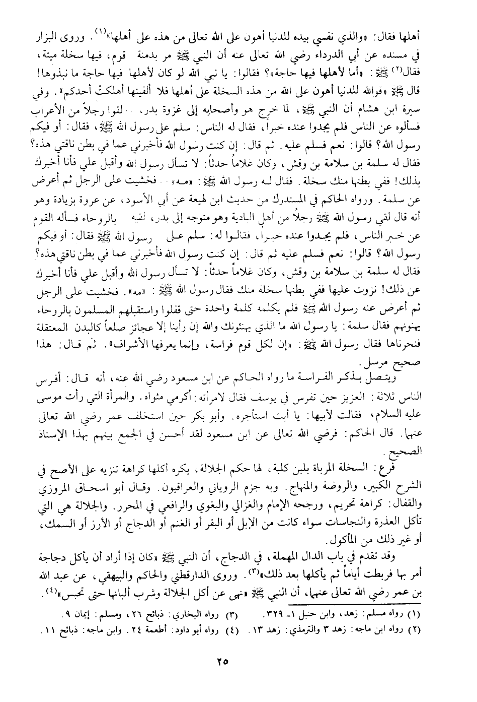 فقال له سلمة بن سلامة بن وقش، وكان غلاما حدثا: لا تسأل رسول الله وأقبل علي فأنا أخبرك عن ذلك! نزوت عليها ففي بطنها سخلة منك فقال رسول الله صلى الله عليه وسلم: «مه» . فخشيت على الرجل ثم أعرض عنه رسول الله صلى الله عليه وسلم فلم يكلمه كلمة واحدة حتى قفلوا واستقبلهم المسلمون بالروحاء يهنونهم فقال سلمة: يا رسول الله ما الذي يهنئونك والله إن رأينا إلا عجائز صلعا كالبدن المعتقلة فنحرناها فقال رسول الله صلى الله عليه وسلم: «إن لكل قوم فراسة، وإنما يعرفها الأشراف» . ثم قال: هذا صحيح مرسل.