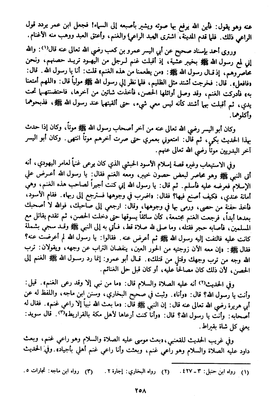 وأنت يا رسول الله؟ قال: «وأنا» . وثبت في صحيح البخاري، وسنن ابن ماجه، واللفظ له عن أبي هريرة رضي الله تعالى عنه قال: إن النبي صلى الله عليه وسلم قال: «ما بعث الله نبيا إلا راعي غنم» . فقال له أصحابه: وأنت يا رسول الله؟ قال: «وأنا كنت أرعاها لأهل مكة بالقراريط» «3» . قال سويد: