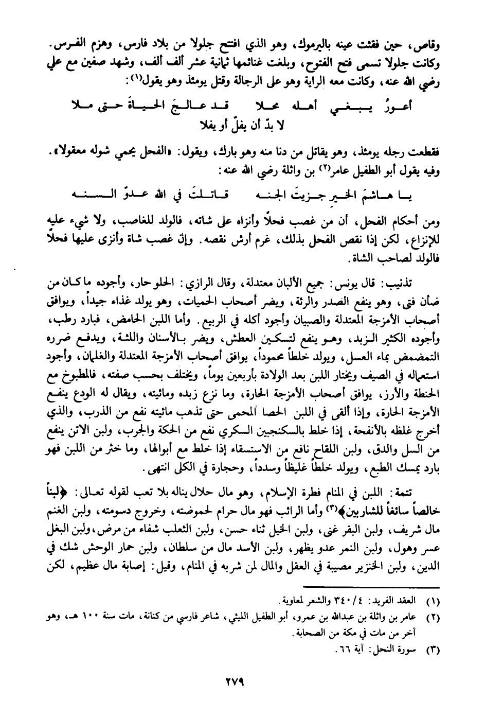 «3» وأما الرائب فهو مال حرام لحموضته، وخروج دسومته، ولبن الغنم مال شريف، ولبن البقر غنى، ولبن الخيل ثناء حسن، ولبن الثعلب شفاء من مرض، ولبن البغل عسر وهول، ولبن النمر عدو يظهر، ولبن الأسد مال من سلطان، ولبن حمار الوحش شك في الدين، ولبن الخنزير مصيبة في العقل والمال لمن شربه في المنام، وقيل: إصابة مال عظيم، لكن