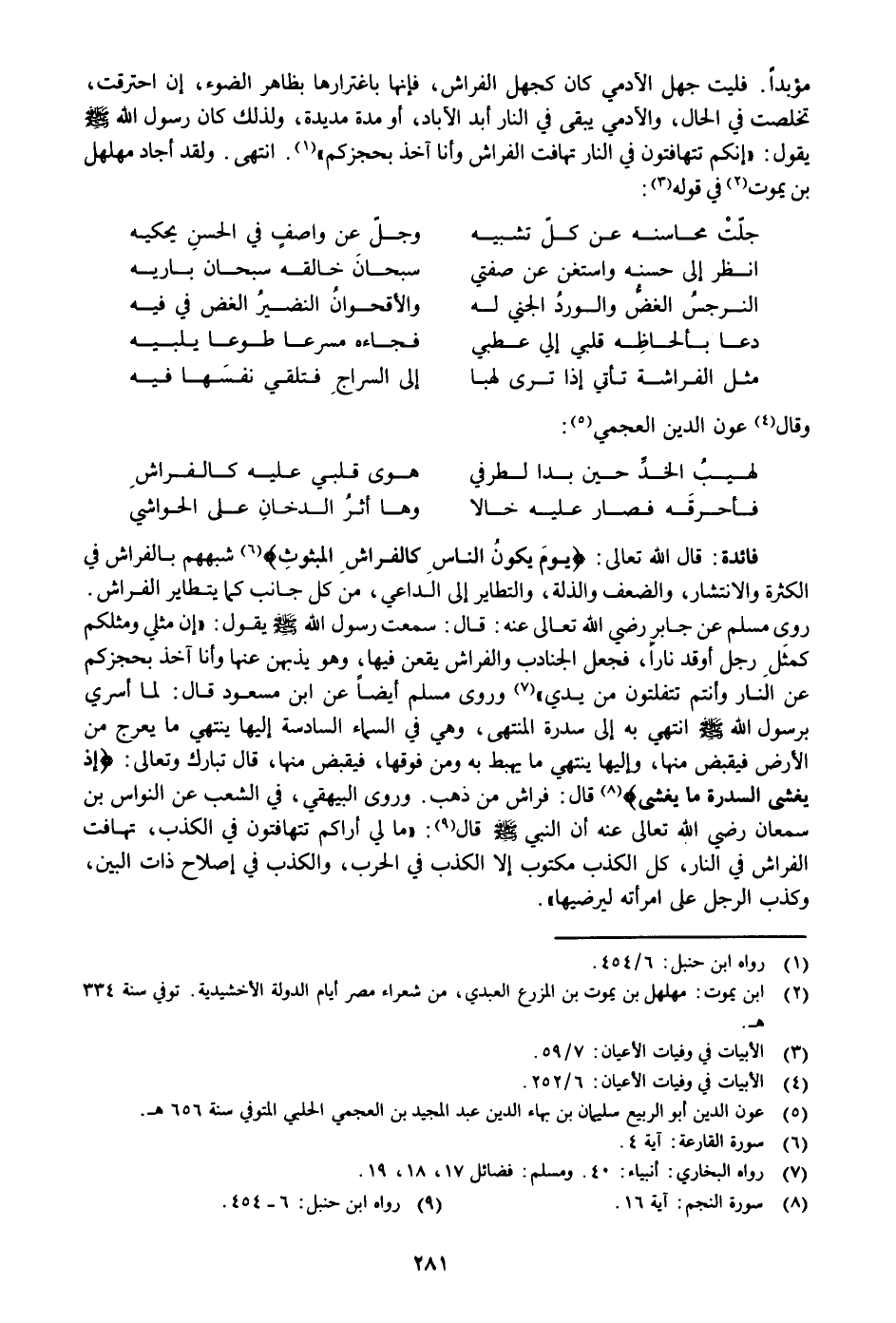 «6» شبههم بالفراش في الكثرة والانتشار، والضعف والذلة، والتطاير إلى الداعي، من كل جانب كما يتطاير الفراش.
