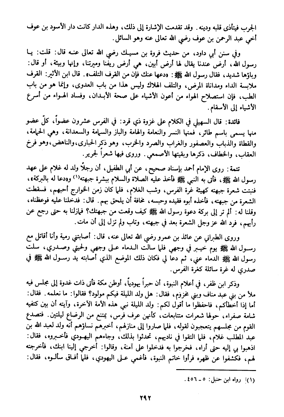 : روى الإمام أحمد بإسناد صحيح، عن أبي الطفيل، أن رجلا ولد له غلام على عهد رسول الله صلى الله عليه وسلم، فأتى به النبي صلى الله عليه وسلم فأخذ عليه الصلاة والسلام ببشرة جبهته «1» و «دعا له بالبركة» ، فنبتت شعرة جبهته كهيئة غرة الفرس، وشب الغلام، فلما كان زمن الخوارج أحبهم، فسقطت الشعرة من جبهته، فأخذه أبوه فقيده وحبسه، مخافة أن يلحق بهم. قال: فدخلنا عليه فوعظناه، وقلنا له: ألم تر إلى بركة دعوة رسول الله صلى الله عليه وسلم كيف وقعت من جبهتك؟ فمازلنا به حتى رجع عن رأيهم، فرد الله عز وجل الشعرة بعد في جبهته، وتاب ولم تزل إلى أن مات.