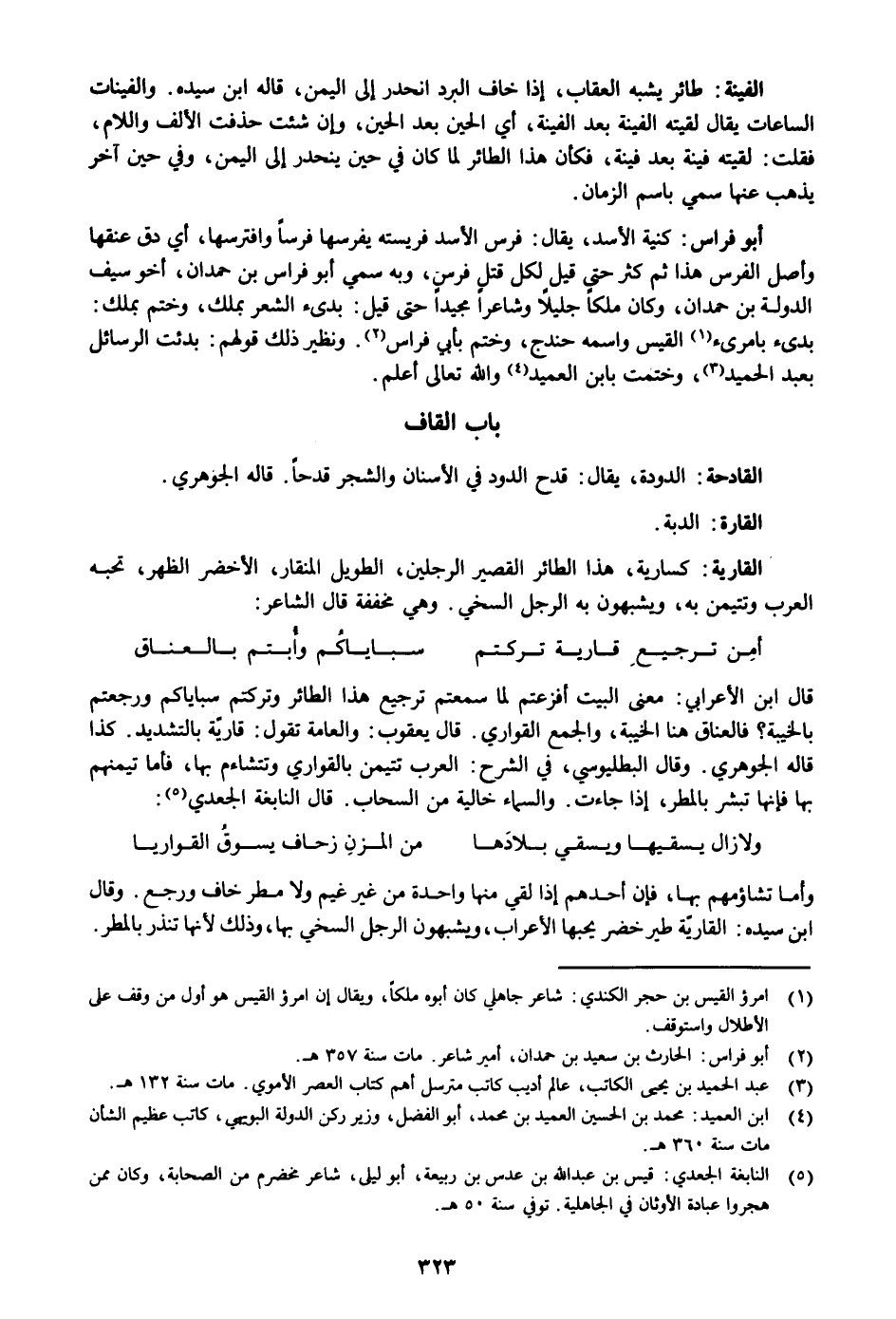 بدىء بامرىء «1» القيس واسمه حندج، وختم بأبي فراس «2» . ونظير ذلك قولهم: بدئت الرسائل بعبد الحميد «3» ، وختمت بابن العميد «4» والله تعالى أعلم.
