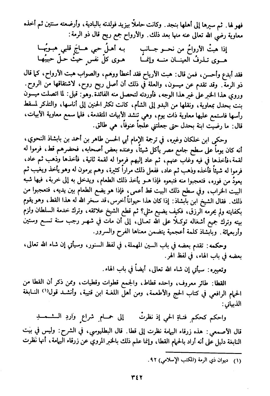 فقد أبدع وأحسن، فمن قال: هبت الأرياح فقد أخطأ ووهم، والصواب هبت الأرواح، كما قال ذو الرمة. وقد تقدم عن ميسون، والعلة في ذلك أن أصل ريح روح، لاشتقاقها من الروح.