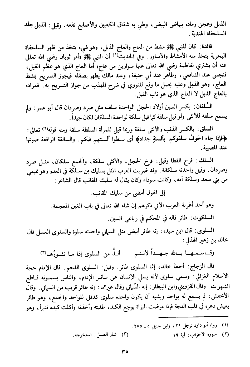 قال ابن سيده: إنه طائر أبيض مثل السماني واحدته سلوة والسلوى العسل قال خالد بن زهير الهذلي: