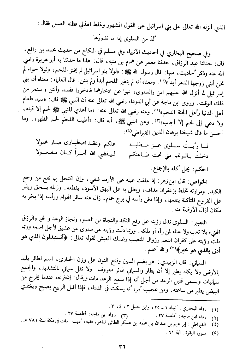 الذي أنزله الله تعالى على بني اسرائيل على القول المشهور وغلط الهذلي فظنه العسل فقال: