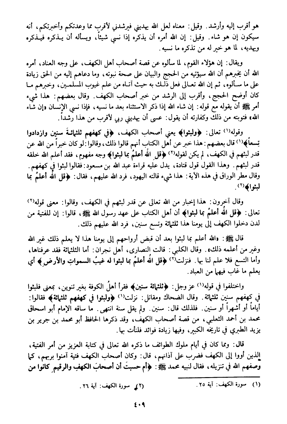 أن أهل الكتاب على عهد رسول الله صلى الله عليه وسلم، قالوا: إن للفتية من لدن دخلوا الكهف إلى يومنا هذا ثلاثمائة وتسع سنين، فرد الله عليهم ذلك.