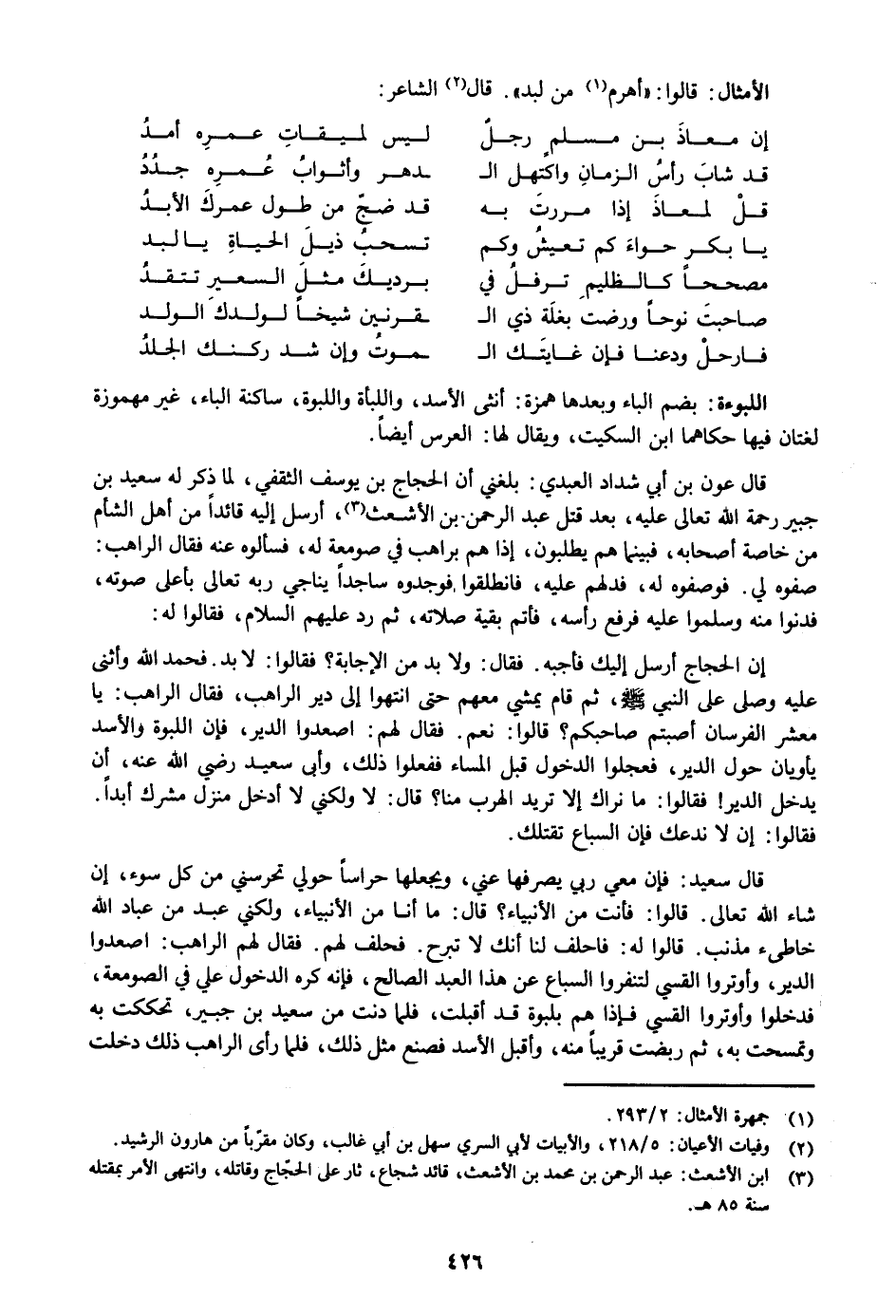 قال عون بن أبي شداد العبدي: بلغني أن الحجاج بن يوسف الثقفي، لما ذكر له سعيد بن جبير رحمة الله تعالى عليه، بعد قتل عبد الرحمن بن الأشعث «3» ، أرسل إليه قائدا من أهل الشأم من خاصة أصحابه، فبينما هم يطلبون، إذا هم براهب في صومعة له، فسألوه عنه فقال الراهب:
