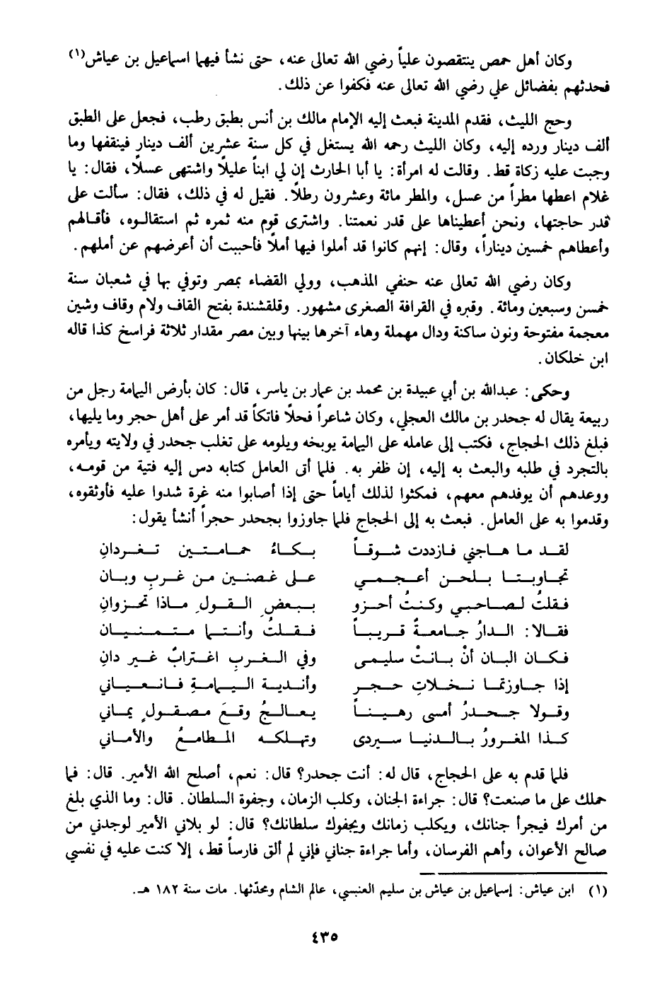 وكان أهل حمص ينتقصون عليا رضي الله تعالى عنه، حتى نشأ فيهما اسماعيل بن عياش «1» فحدثهم بفضائل علي رضي الله تعالى عنه فكفوا عن ذلك.
