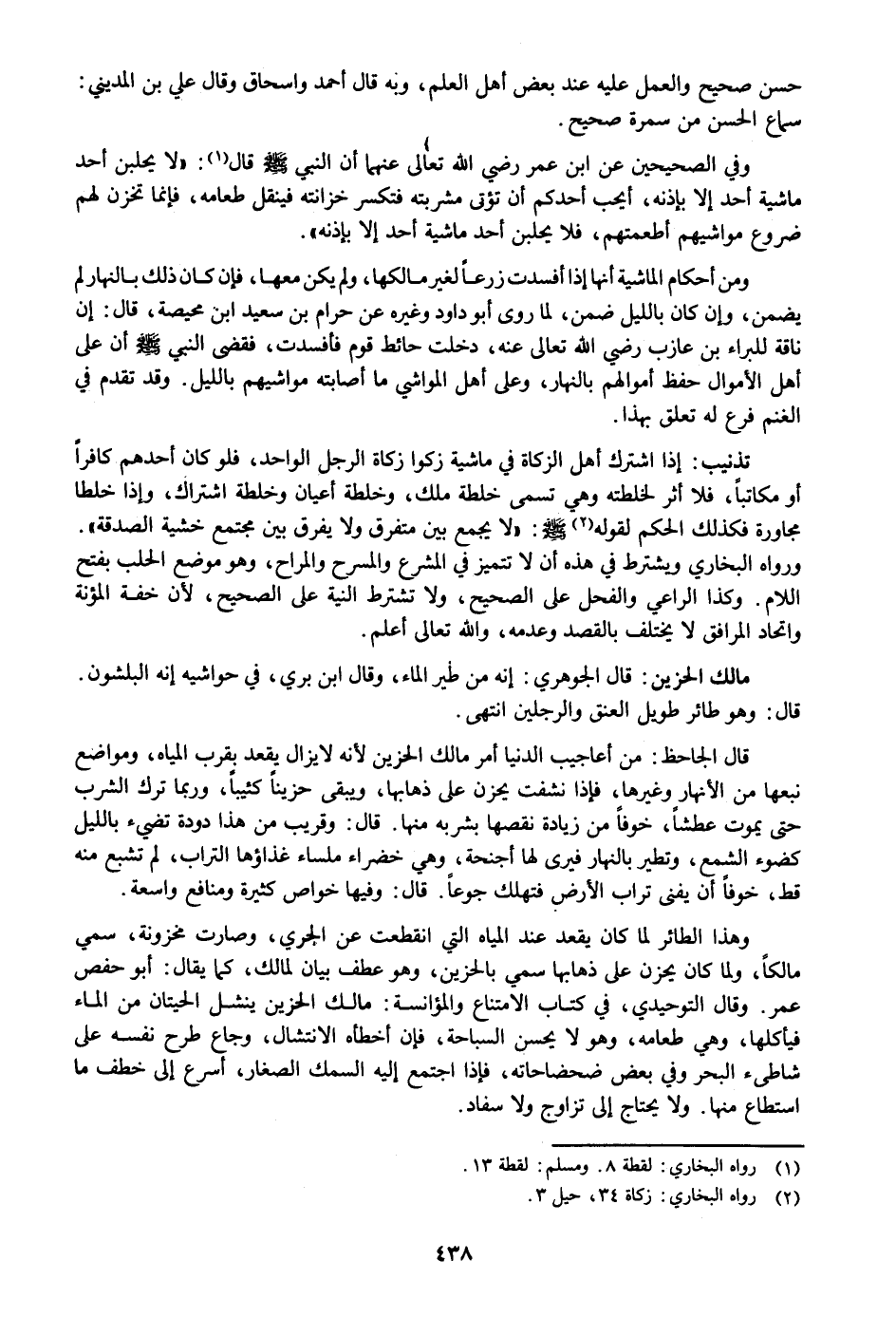 وفي الصحيحين عن ابن عمر رضي الله تعالى عنهما أن النبي صلى الله عليه وسلم قال «1» : «لا يحلبن أحد ماشية أحد إلا بإذنه، أيحب أحدكم أن تؤتى مشربته فتكسر خزانته فينقل طعامه، فإنما تخزن لهم ضروع مواشيهم أطعمتهم، فلا يحلبن أحد ماشية أحد إلا بإذنه» .