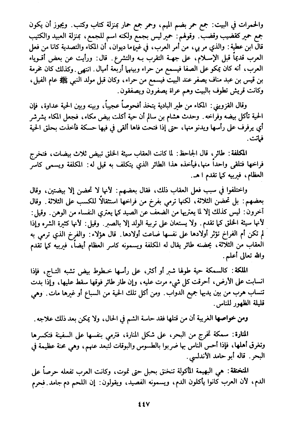 طائر، قال الجاحظ: لما كانت العقاب سيئة الخلق تبيض ثلاث بيضات، فتخرج فراخها فتلقى واحدا منها، فيأخذه هذا الطائر الذي يتكلف به قيل له: المكلفة ويسمى كاسر العظام، فيربيه كما تقدم اهـ.