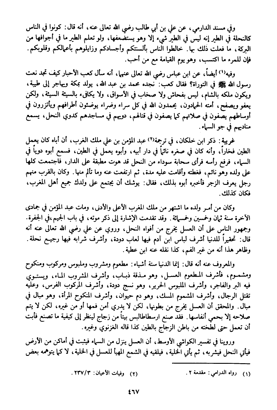 وفي مسند الدارمي، عن علي بن أبي طالب رضي الله تعالى عنه، أنه قال: كونوا في الناس كالنحلة في الطير إنه ليس في الطير شيء إلا وهو يستضعفها، ولو تعلم الطير ما في أجوافها من البركة، ما فعلت ذلك بها. خالطوا الناس بألسنتكم وأجسادكم وزايلوهم بأعمالكم وقلوبكم.
