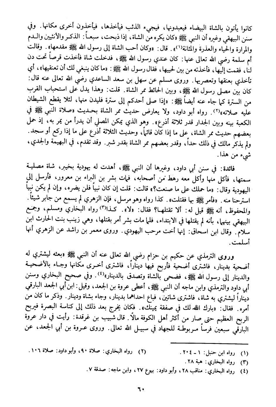 كانوا يأتون بالشاة البيضاء فيعبدونها، فيجيء الذئب فيأخذها، فيأخذون أخرى مكانها. وفي سنن البيهقي وغيره أن النبي صلى الله عليه وسلم «كان يكره من الشاة، إذا ذبحت، سبعا: الذكر والأنثيين والدم والمرارة والحياء والعذرة والمثانة «1» » . قال: «وكان أحب الشاة إلى رسول الله صلى الله عليه وسلم مقدمها» . وقالت أم سلمة رضي الله تعالى عنها: كان عندي رسول الله صلى الله عليه وسلم، فدخلت شاة فأخذت قرصا تحت دن لنا، فقمت إليها، فأخذته من بين لحييها، فقال رسول الله صلى الله عليه وسلم: «ما كان ينبغي لك أن تعنقيها» ، أي تأخذي بعنقها وتعصريها. وروى مسلم عن سهل بن سعد الساعدي رضي الله تعالى عنه قال: