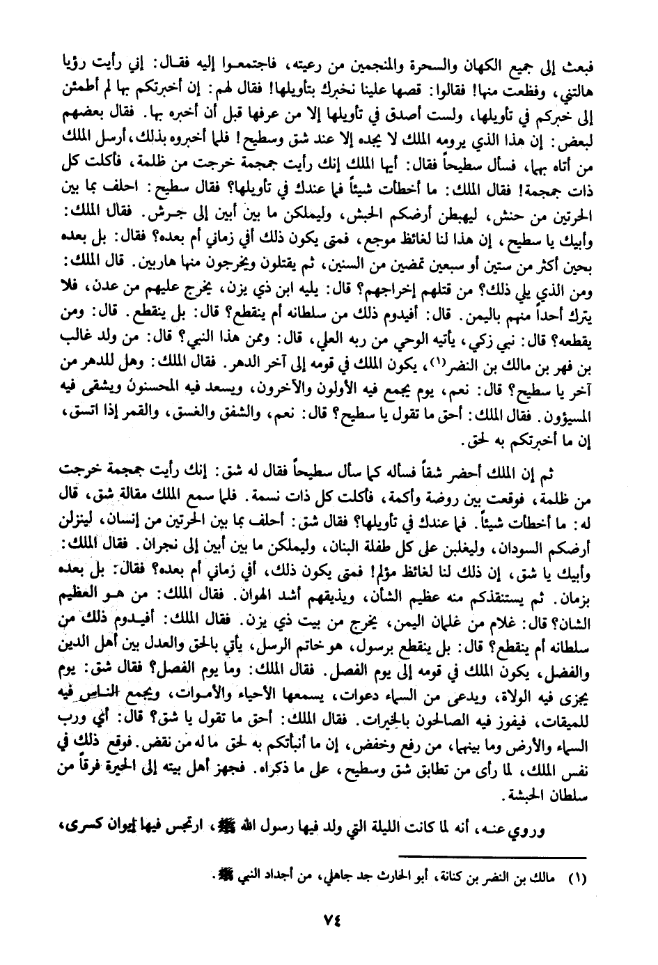 وأبيك يا سطيح، إن هذا لنا لغائظ موجع، فمتى يكون ذلك أفي زماني أم بعده؟ فقال: بل بعده بحين أكثر من ستين أو سبعين تمضين من السنين، ثم يقتلون ويخرجون منها هاربين. قال الملك: