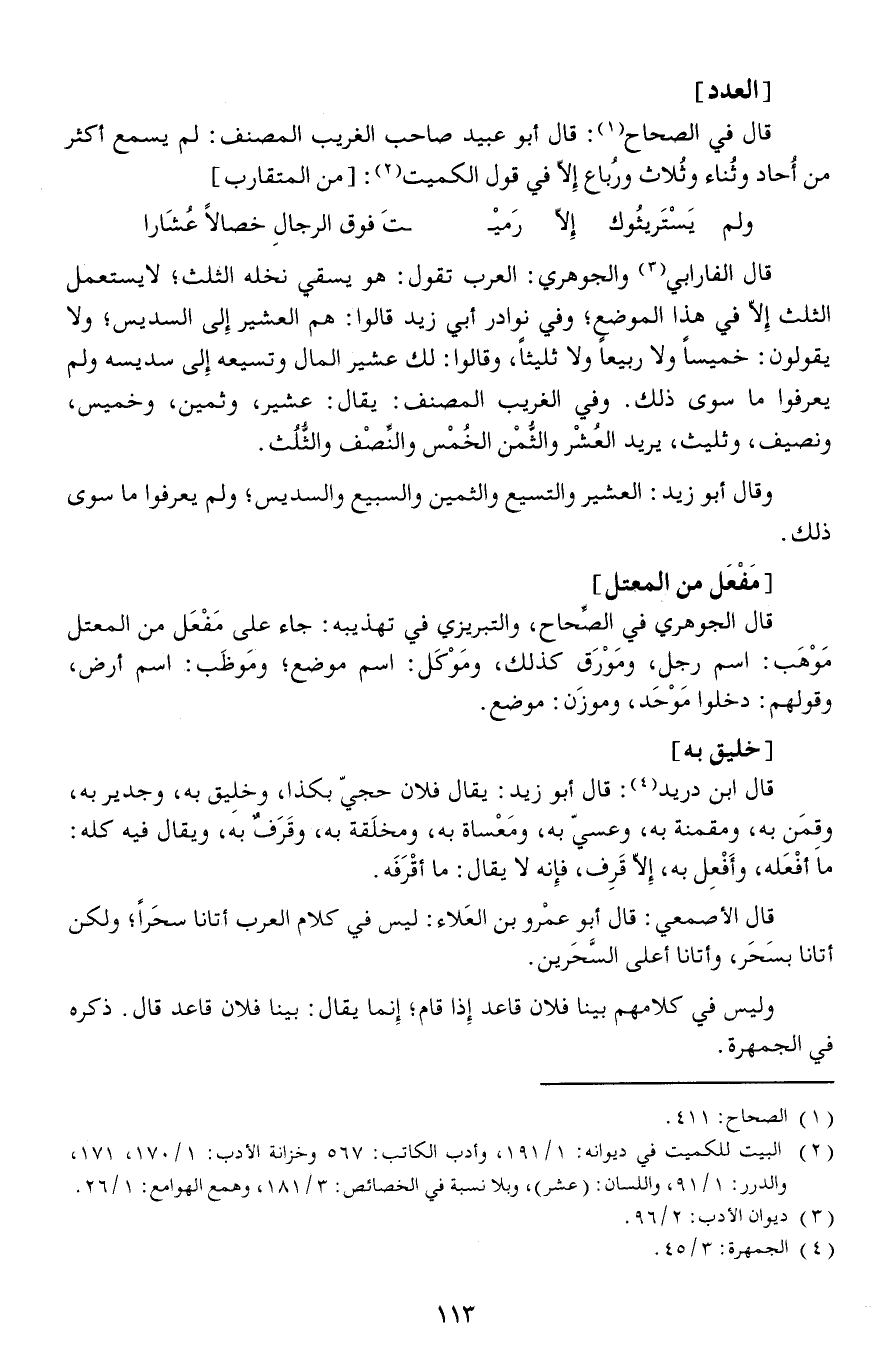 قال في الصحاح: قال أبو عبيد صاحب الغريب المصنف: لم يسمع أكثر من أُحاد وثُناء وثُلاث ورُباع إلا في قول الكميت: [// من المتقارب //]