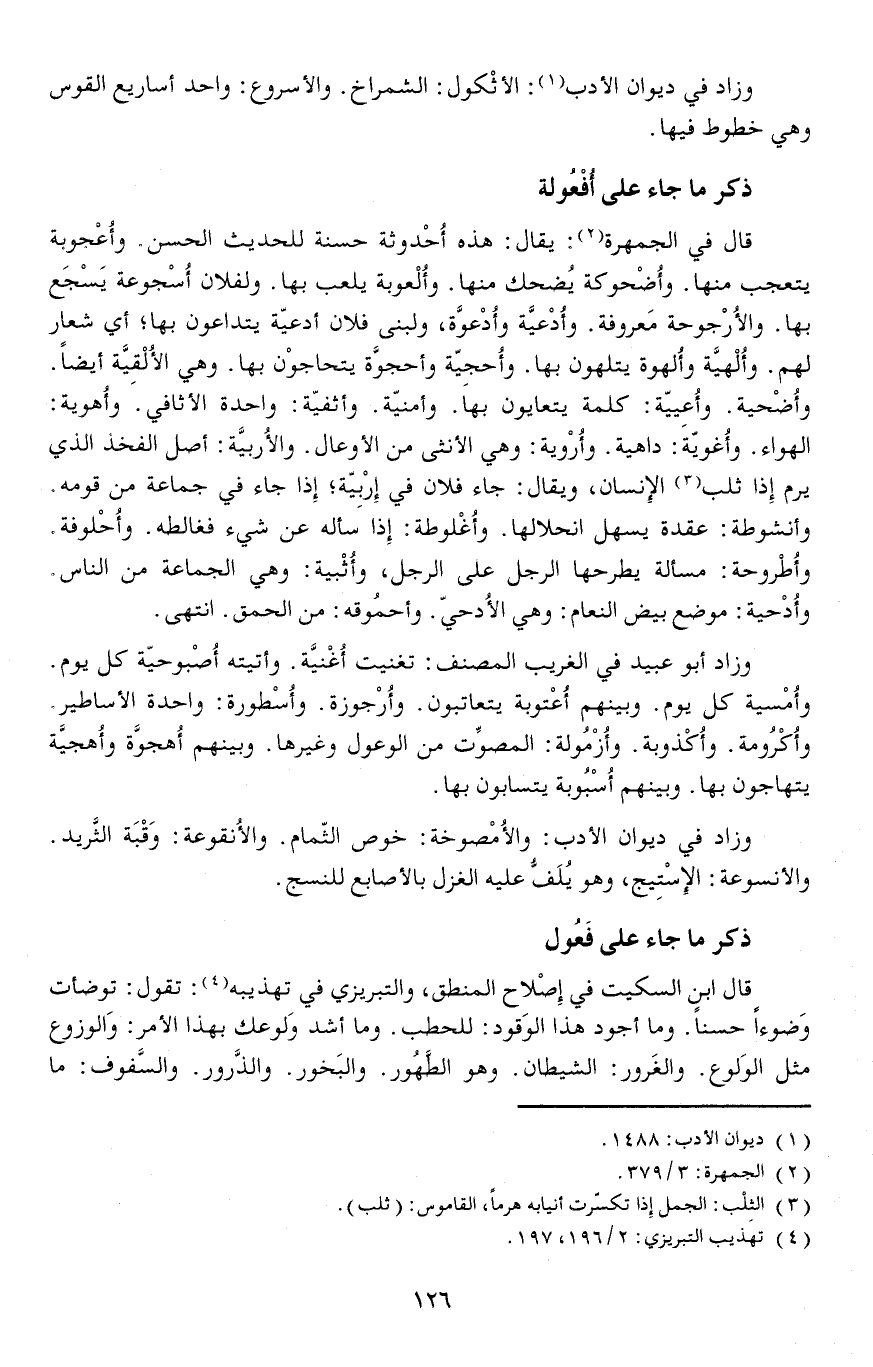 ذكر ما جاء على أُفْعُولة