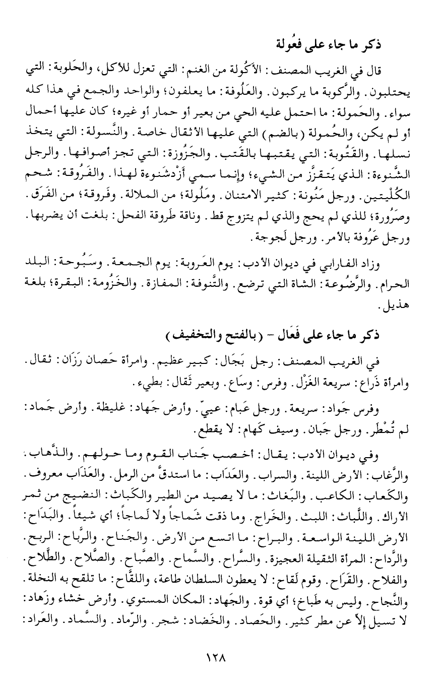 والبَغاث: ما لا يصيد من الطير والكَباث: النضيج من ثمر الأراك واللَّباث اللبث والخَراج وما ذقت شَماجاً ولا لَماجاً أي شيئا والبَدَاح الأرض اللينة الواسعة.