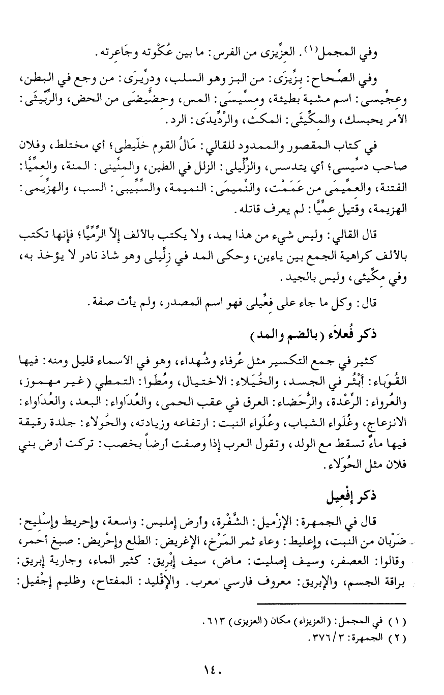 ذكر فُعلاَء (بالضم والمد