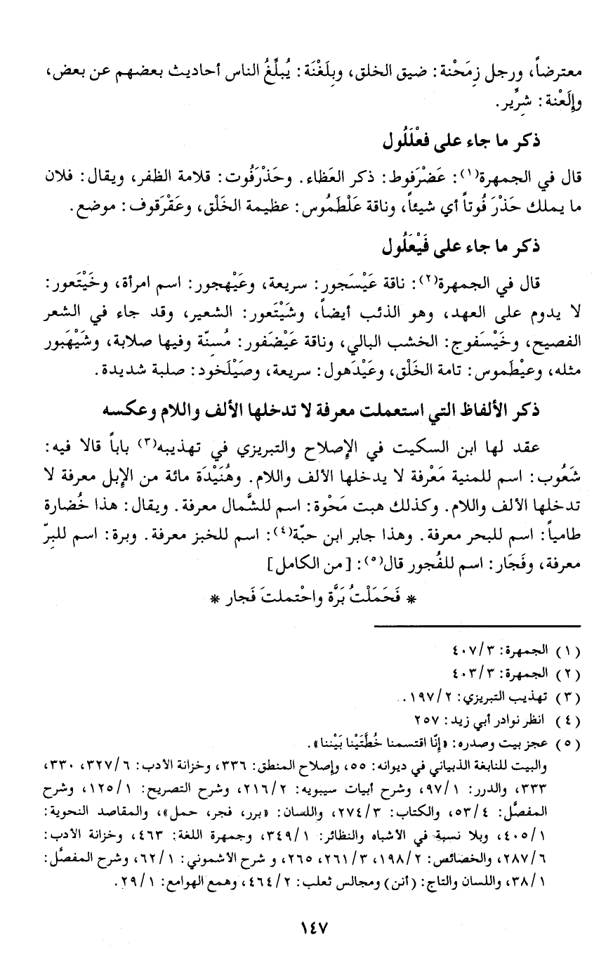 وبرة: اسم للبِرّ معرفة، وفَجَار: اسم للفُجور قال: [// من الكامل //]