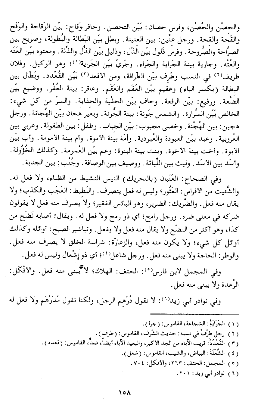 وبطل بين البَطالة والبُطولة، وصريح بين الصرَّاحة والصُّروحة.