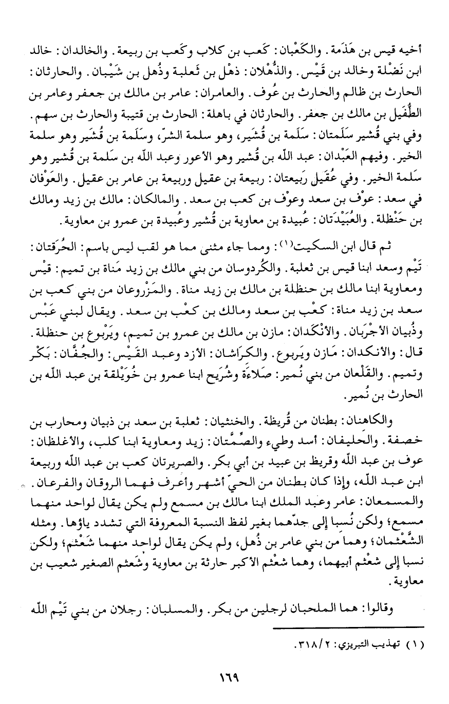 والكاهِنان بطنان من قُريظة والخنثيان ثعلبة بن سعد بن ذبيان ومحارب بن خصفة والحليفان أسد وطيء والصمتان زيد بن معاوية ابنا كلب والأغلظان عوف بن عبد الله وقريظ بن عبيد بن أبي بكر والصريرتان كعب بن عبد الله وربيعة ابن عبد الله وإذا كان بطنان من الحي أشهر وأعرف فهما الروقان والفرعان والمسمعان عامر وعبد الملك ابنا مالك بن مسمع ولم يكن يقال لواحد منهما مسمع ولكن نُسِبا إلى جدهما بغير لفظ النسبة المعروفة التي تشدد ياؤها ومثله الشعتمان وهما من بني عامر بن ذُهل ولم يكن يقال لواحد منهما شَعْثم ولكن نسبا إلى شعْثم أبيهما وهما شعْثم الأكبر حارثه بن معاوية وشَعثم الصغير شعيب بن معاوية