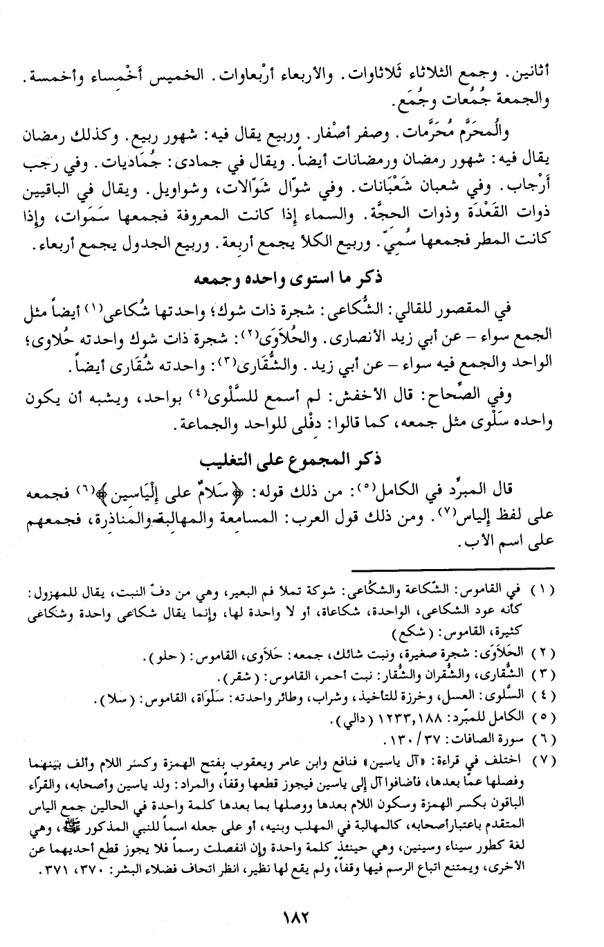 قال المبرِّد في الكامل: من ذلك قوله: سَلامٌ على إلْيَاسِين فجمعه على لفظ إلياس.
