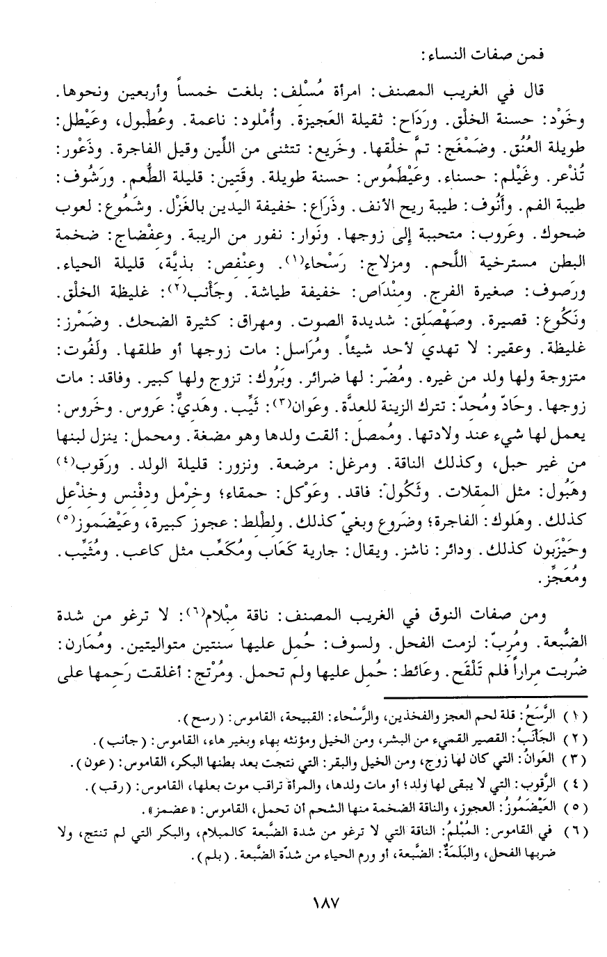 ومن صفات النوق في الغريب المصنف: ناقة مِبْلام: لا ترغو من شدة الضُّبعة.