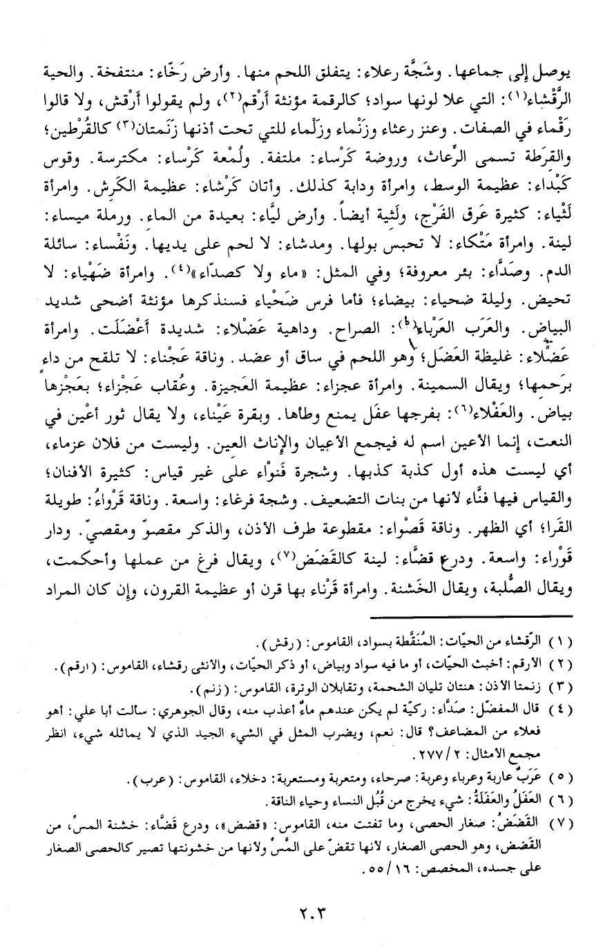 والحية الرَّقْشاء: التي علا لونها سواد كالرقمة مؤنثة أَرْقم، ولم يقولوا أَرْقش، ولا قالوا رَقْماء في الصفات.