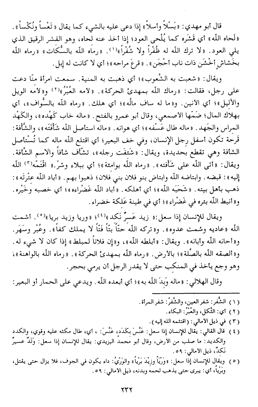 ((ماله استأصل الله شَأْفَتَه)) ، والشَّأْفة: قَرحة تكون أسفل رِجل الإنسان، وفي خف البعير أي اقتلع الله ماله كما تُسْتأصل الشأفة وهي تقطع بحديدة، ويقال: ((شَئِفَت رجله)) ، تشْأَف شأفا والاسم الشَّأفة.