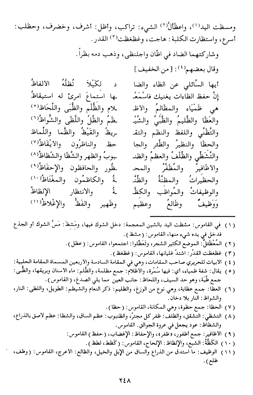 (والحظا والنظير والظئر والجاحظ ... والناظرون والأيقاظ)