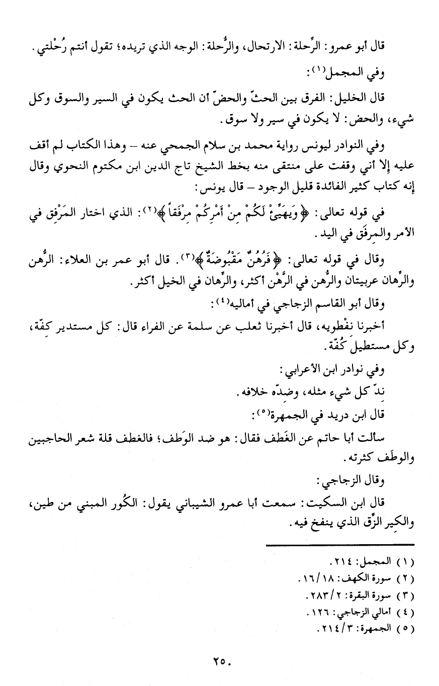 وفي النوادر ليونس رواية محمد بن سلام الجمحي عنه - وهذا الكتاب لم أقف عليه إلا أني وقفت على منتقى منه بخط الشيخ تاج الدين ابن مكتوم النحوي وقال إنه كتاب كثير الفائدة قليل الوجود - قال يونس: في قوله تعالى: {وَيهَيِّئْ لَكُمْ مِنْ أَمْرِكُمْ مِرْفَقاً} : الذي اختار المَرْفِق في الأمر والمِرفق في اليد.