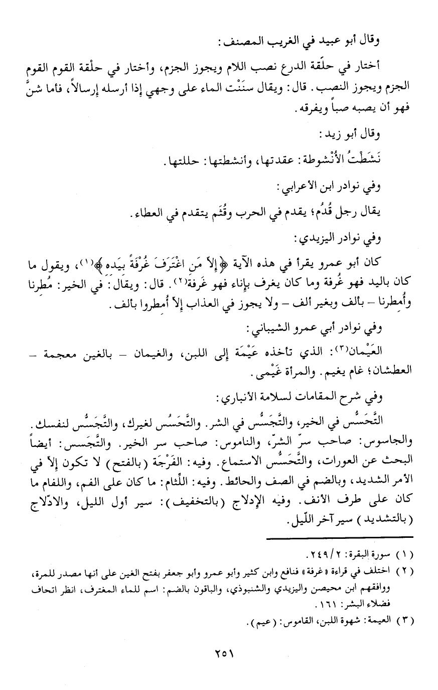 وفي نوادر اليزيدي: كان أبو عمرو يقرأ في هذه الآية {إلا مَنِ اغْتَرَفَ غُرْفَةً بِيَدِه} ، ويقول ما كان باليد فهو غُرفة وما كان يغرف بإناء فهو غَرفة.