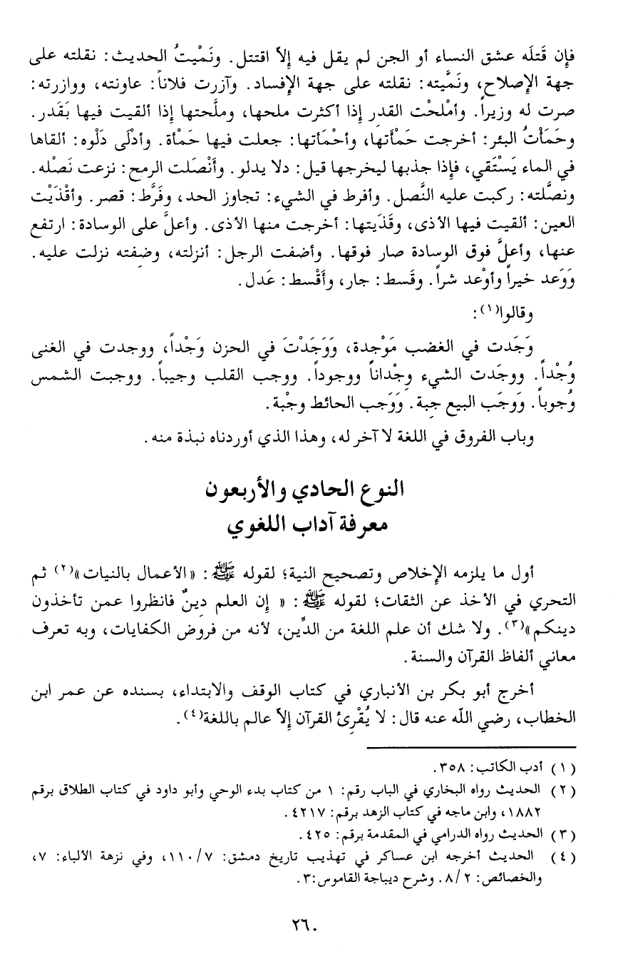 ولا شك أن علم اللغة من الدِّين، لأنه من فروض الكفايات، وبه تعرف معاني ألفاظ القرآن والسنة.