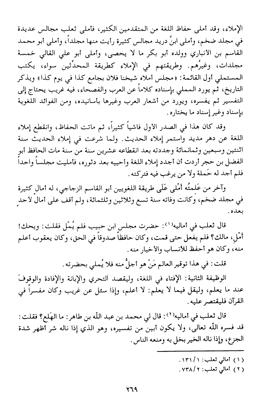 الإملاء، وقد أملى حفاظ اللغة من المتقدمين الكثير، فأملى ثعلب مجالس عديدة في مجلد ضخم، وأملى ابنُ دريد مجالس كثيرة رأيت منها مجلدا، وأملى أبو محمد القاسم بن الأنباري وولده أبو بكر ما لا يحصى، وأملى أبو علي القالي خمسة مجلدات، وغيرُهم.