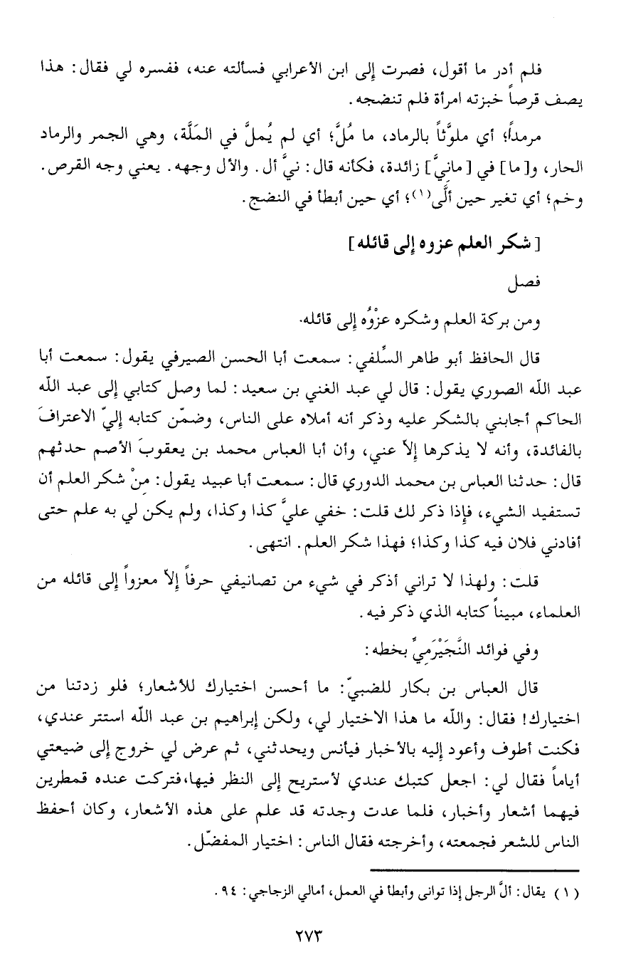 فصل ومن بركة العلم وشكره عزْوُه إلى قائله.