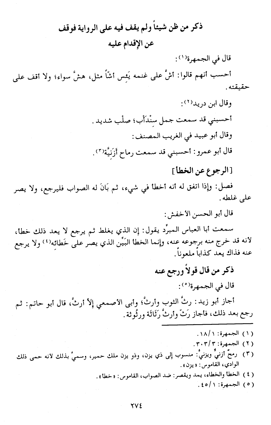 قال أبو الحسن الأخفش: سمعت أبا العباس المبرِّد يقول: إن الذي يغلط ثم يرجع لا يعد ذلك خطأ، لأنه قد خرج منه برجوعه عنه، وإنما الخطأ البَيِّن الذي يصر على خَطائِه ولا يرجع عنه فذاك يعد كذابا ملعونا.