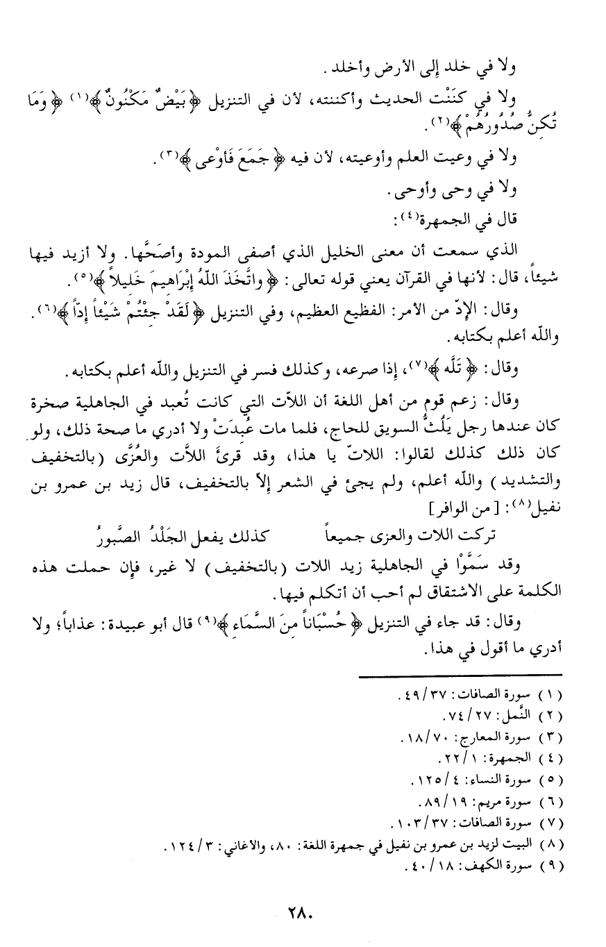 وقد سَمَّوْا في الجاهلية زيد اللات (بالتخفيف) لا غير، فإن حملت هذه الكلمة على الاشتقاق لم أحب أن أتكلم فيها.