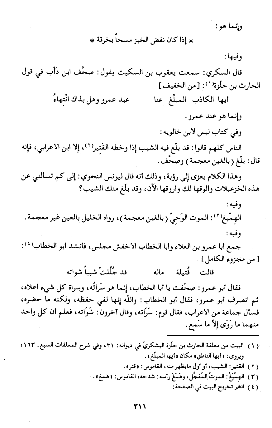 (إذا كان نفض الخبز مسحا بخرقة) // الطويل // وفيها: قال السكري: سمعت يعقوب بن السكيت يقول: صحَّف ابن دَأْب في قول الحارث بن حلزة: