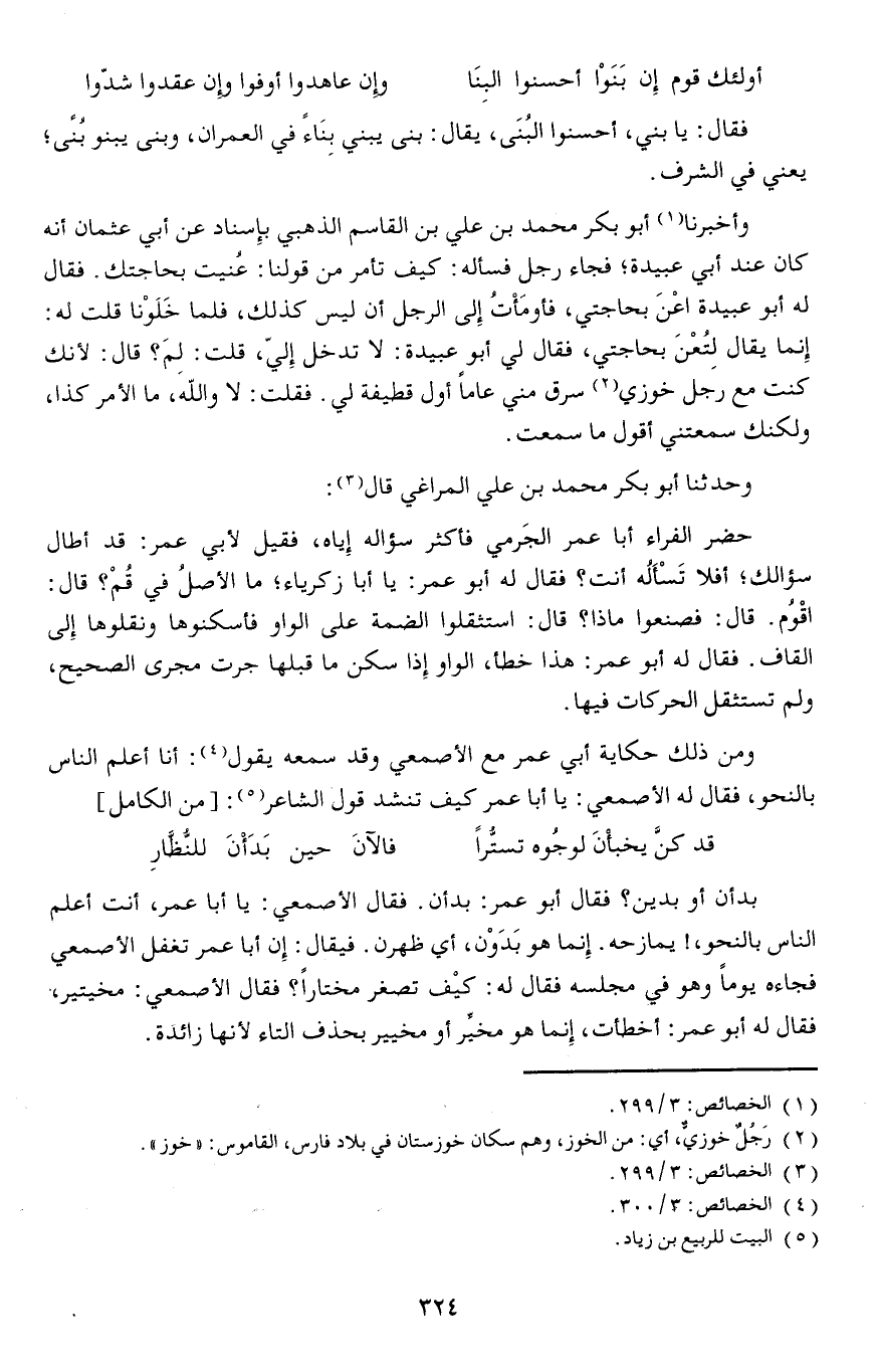 وأخبرنا أبو بكر محمد بن علي بن القاسم الذهبي بإسناد عن أبي عثمان أنه كان عند أبي عبيدة فجاء رجل فسأله: كيف تأمر من قولنا: عُنيت بحاجتك.
