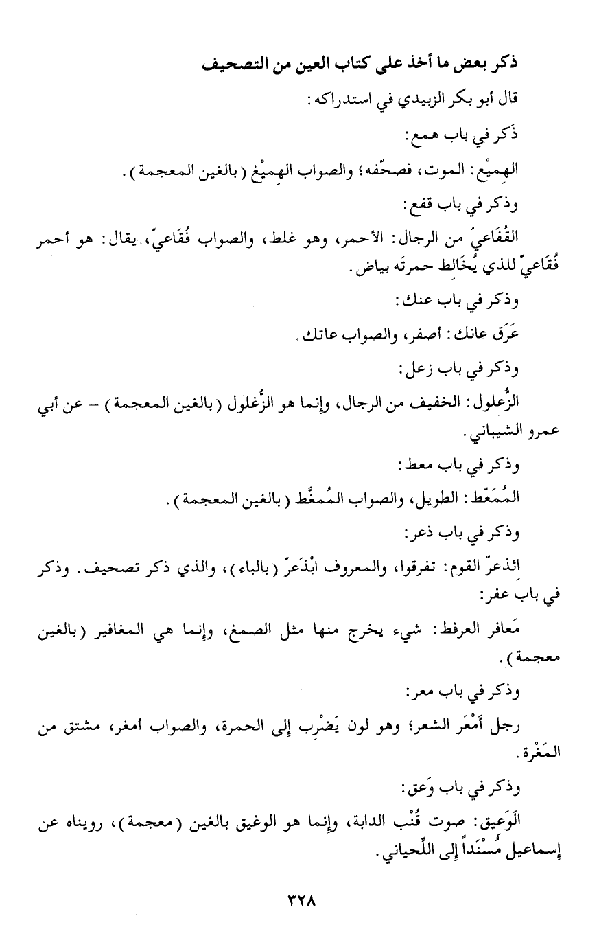 وذكر في باب زعل: الزغلول: الخفيف من الرجال، وإنما هو الزُّغلول (بالغين المعجمة) - عن أبي عمرو الشيباني.