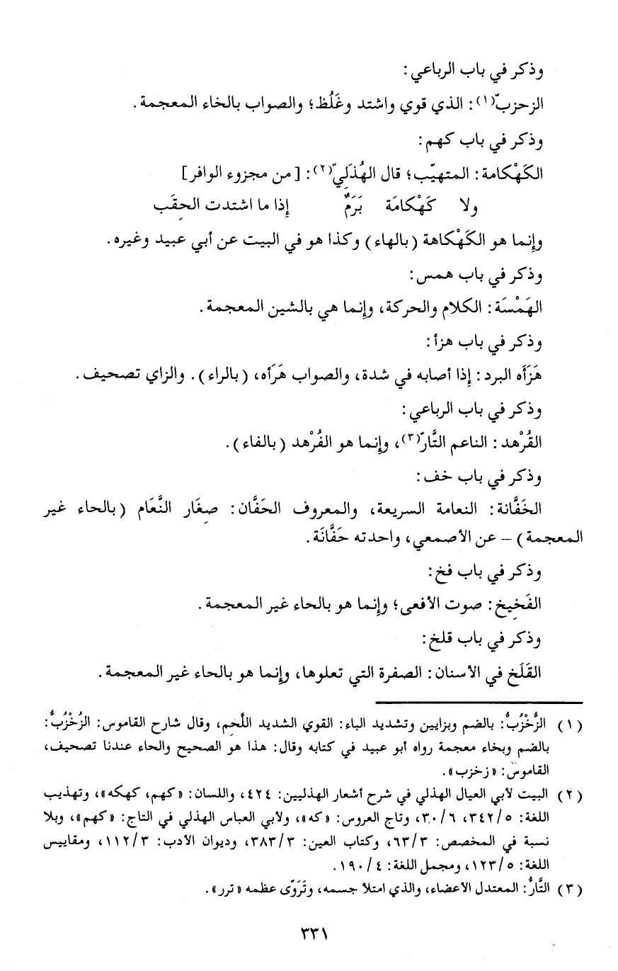 وذكر في باب الرباعي: الزحزب: الذي قوي واشتد وعلظ والصواب بالخاء المعجمة.