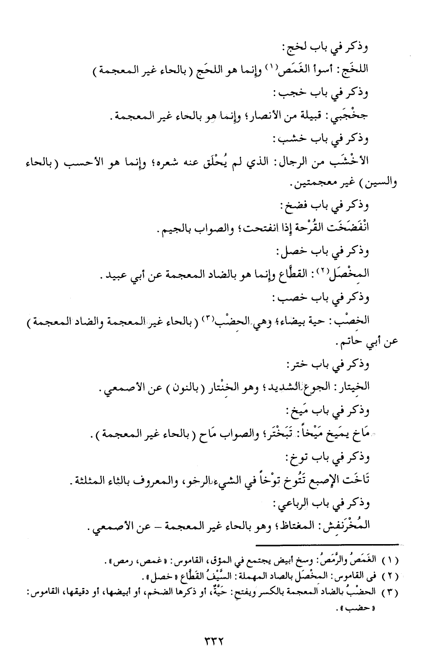 وذكر في باب خشب: الأخْشَب من الرجال: الذي لم يُحْلَق عنه شعره وإنما هو الأحسب (بالحاء والسين) غير معجمتين.