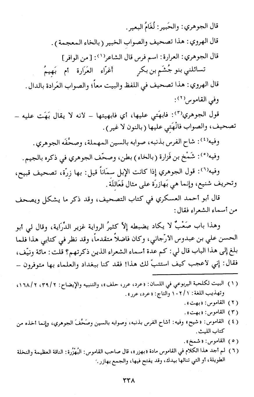 وفيه: قول الجوهري إذا كانت الإبل سِمَاناً قيل: بها زِرّة، تصحيف قبيح، وتحريف شنيع، وإنما هي بَهازرَة على مثال فَعَالِلَة.