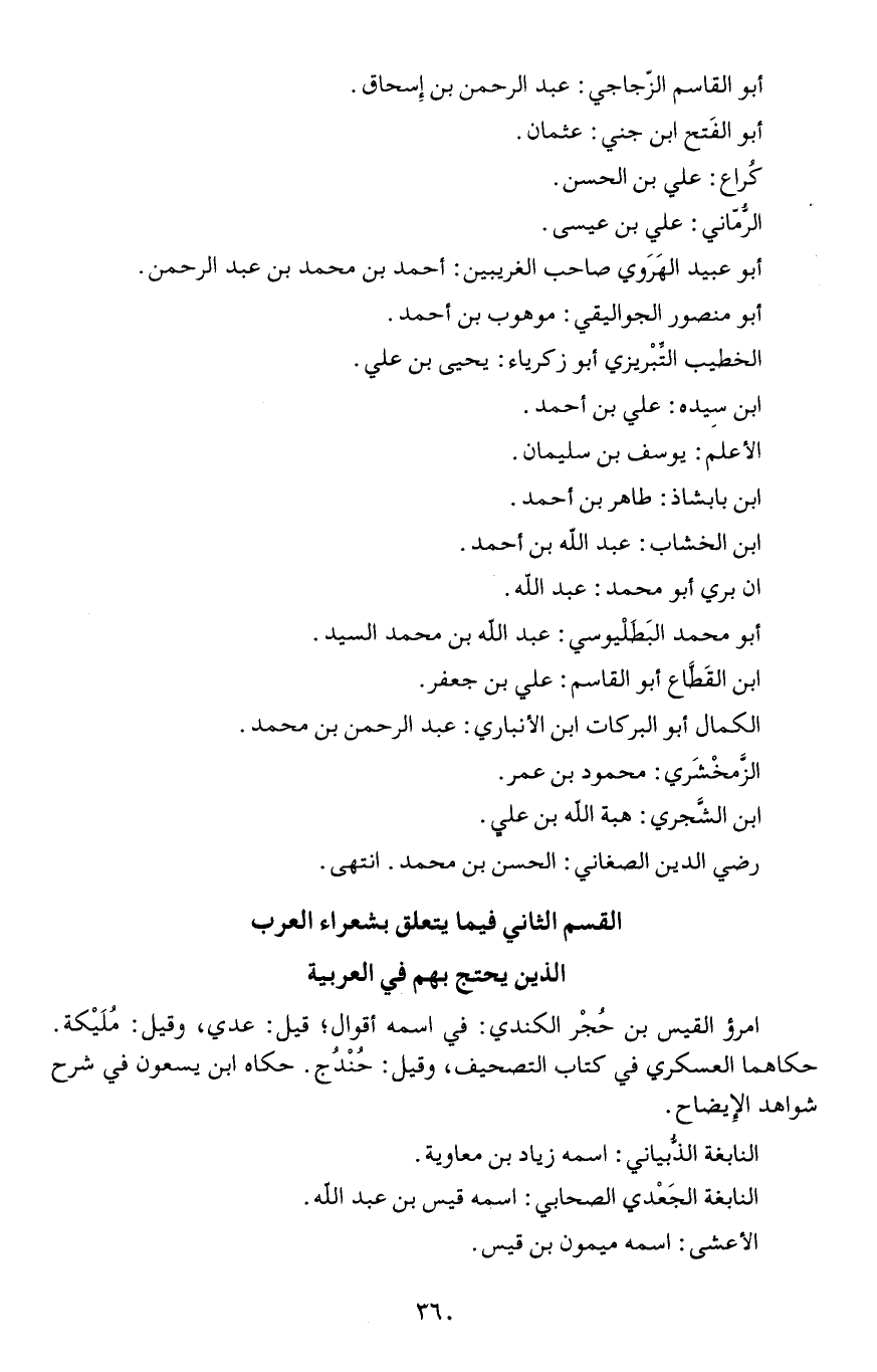 القسم الثاني فيما يتعلق بشعراء العرب الذين يحتج بهم في العربية