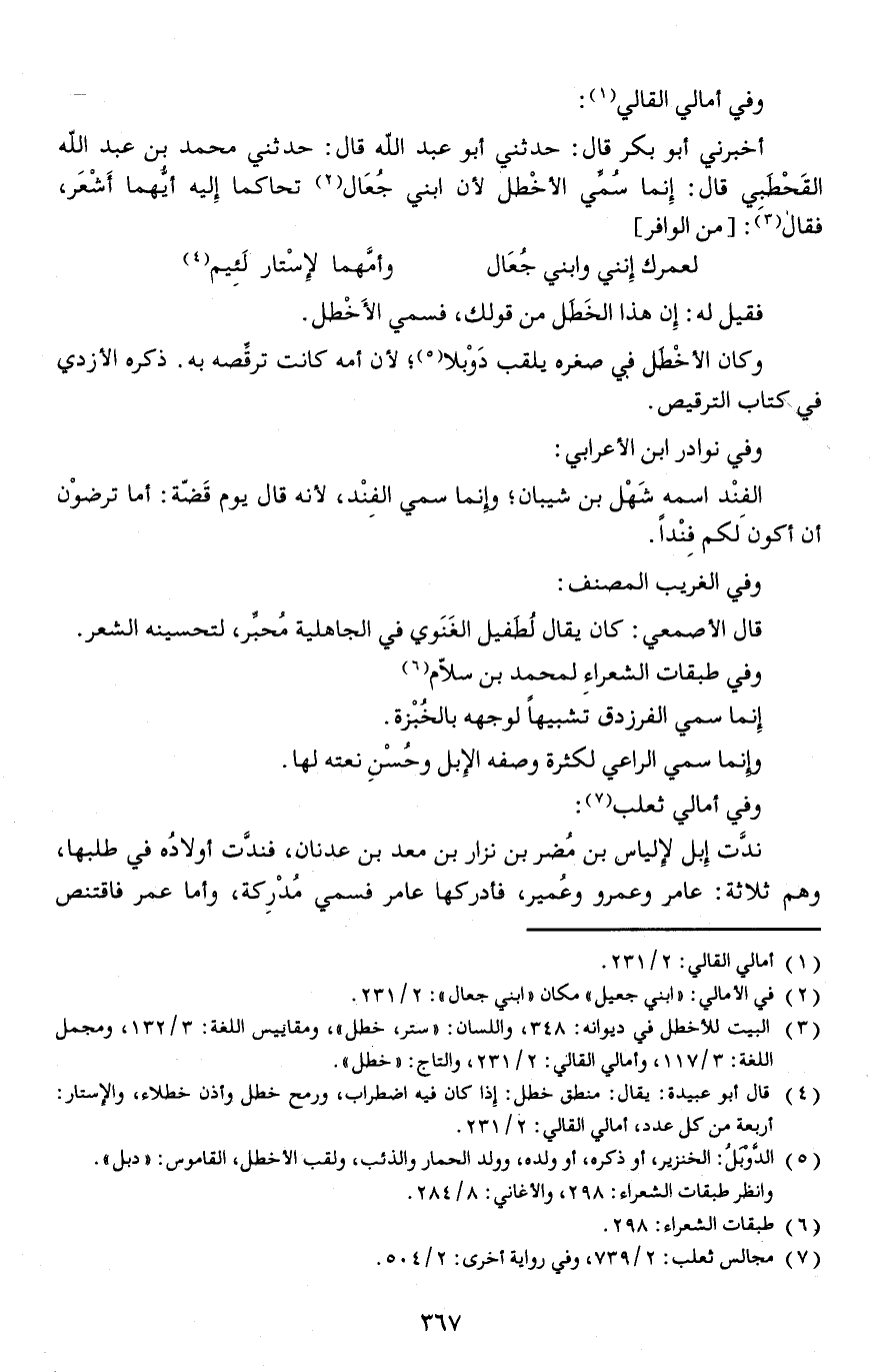 وفي أمالي القالي: أخبرني أبو بكر قال: حدثني أبو عبد الله قال: حدثني محمد بن عبد الله القَحْطَبِي قال: إنما سُمِّي الأخْطل لأن ابني جُعَال تحاكما إليه أيُّهما أَشْعَر، فقال: