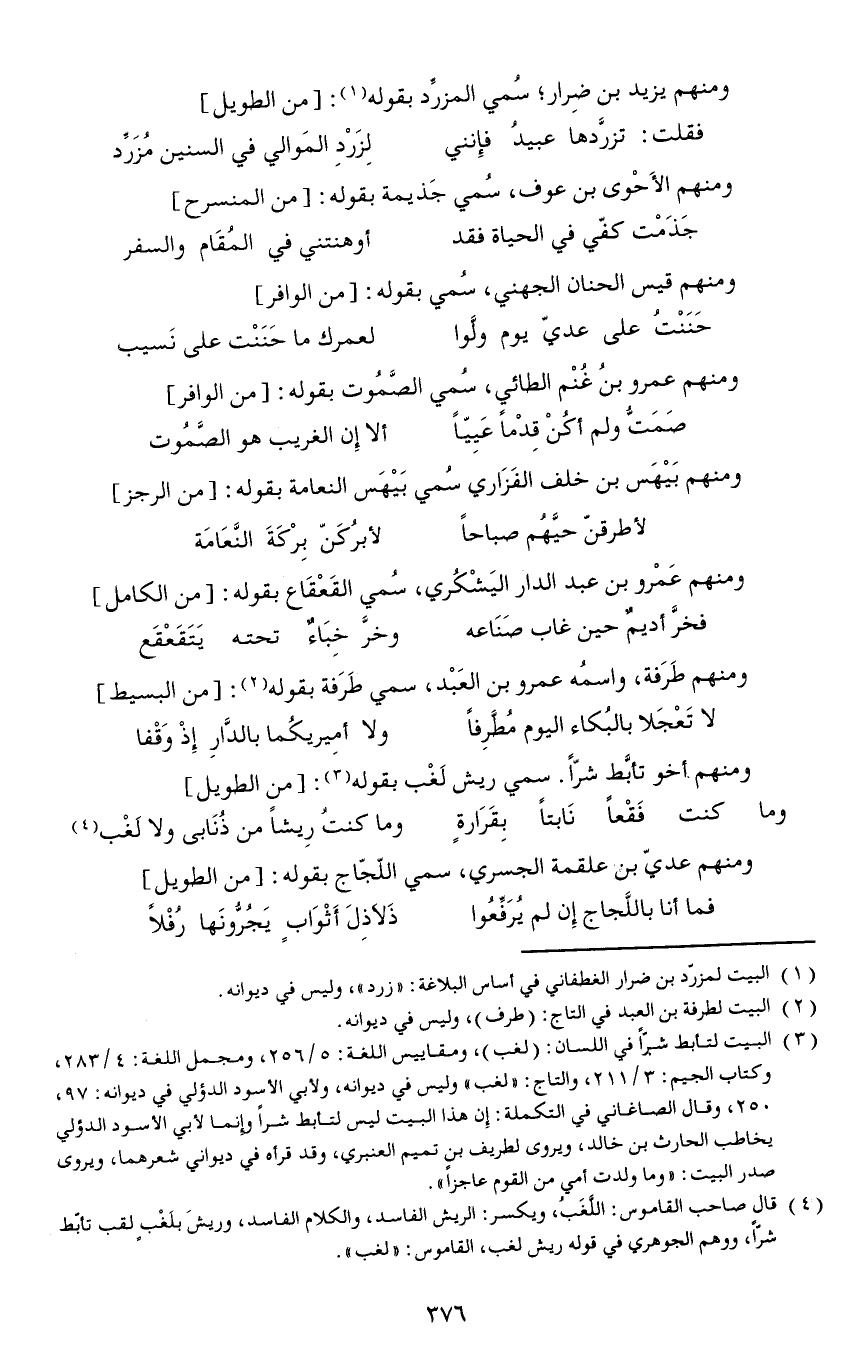 (فخرَّ أديمٌ حين غاب صَنَاعه ... وخر خباء تحته يتقعقع) // الكامل // ومنهم طَرَفة، واسمُه عمرو بن العَبْد، سمي طَرَفة بقوله: