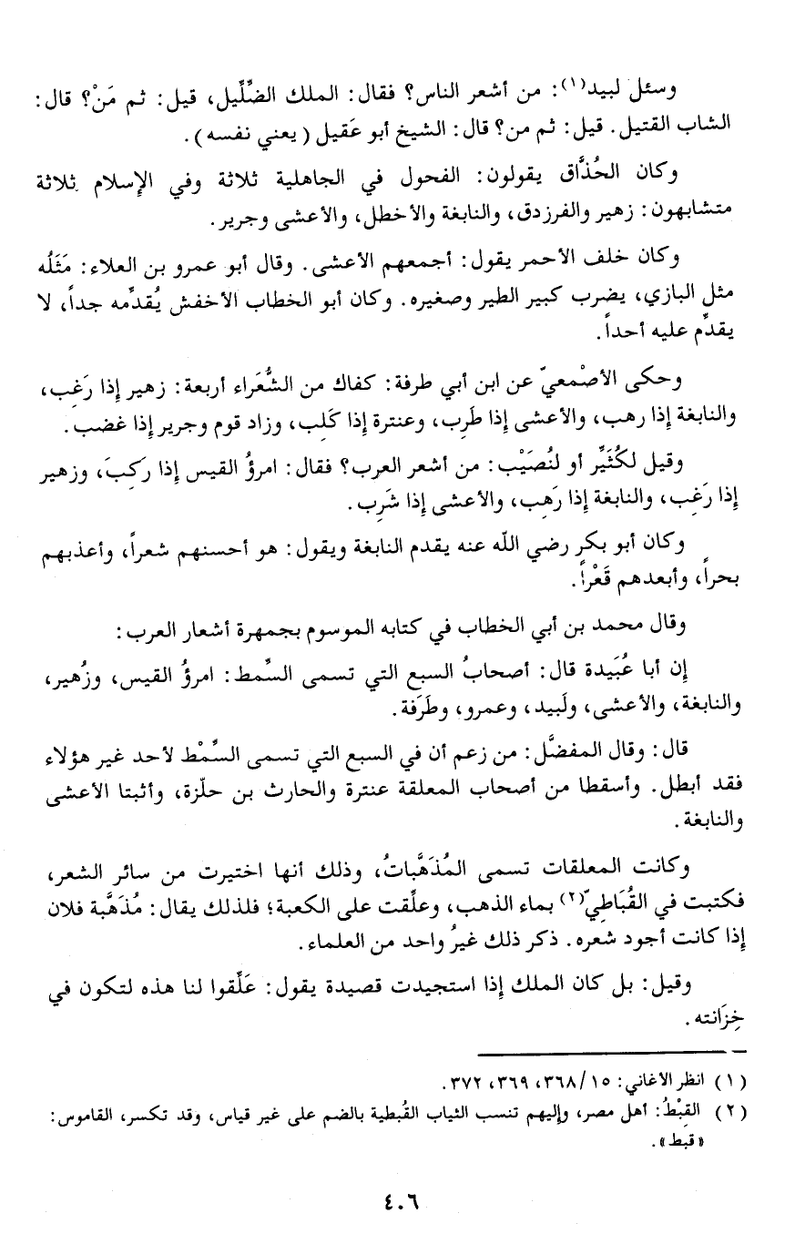 قال: وقال المفضَل: من زعم أن في السبع التي تسمى السِّمْط لأحد غير هؤلاء فقد أبطل.