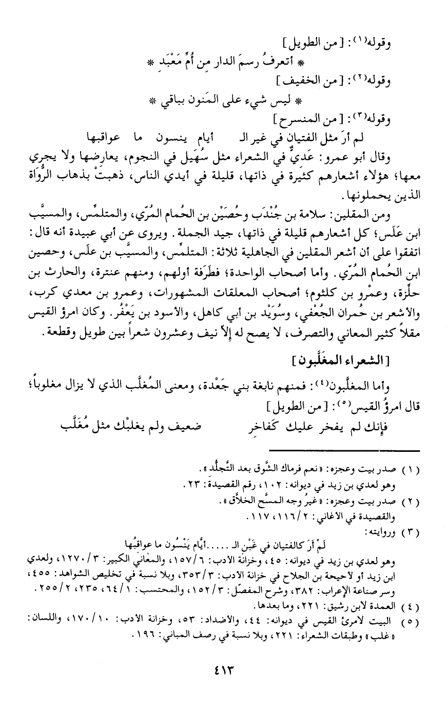 وأما المغلَّبون: فمنهم نابغة بني جَعْدة، ومعنى المُغلَّب الذي لا يزال مغلوبا قال امرؤُ القيس: