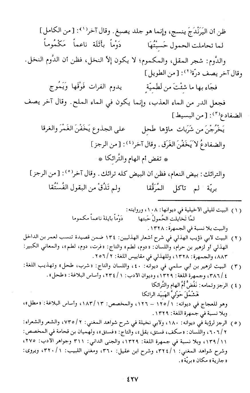 (لما تحاملت الحمول حَسِبْتُهَا ... دوما بأثلة ناعما مكموما) // الكامل // والدَّوم: شجر المقل، والمكموم لا يكون إلا النخل، فظن أن الدَّوم النخل.