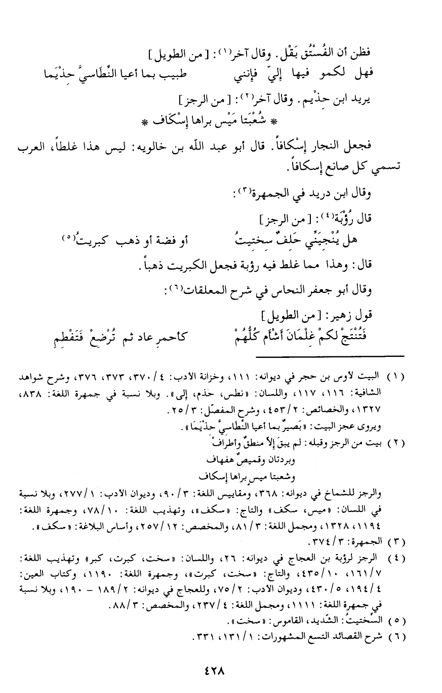 (هل يُنْجِيَنِّي حَلِفٌ سِختِيتُ ... أو فضة أو ذهب كبريب) // الرجز // قال: وهذا مما غلط فيه رؤبة فجعل الكبريت ذهبا.