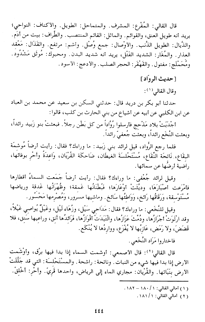 وقال القالي: حدثنا أبو بكر بن دريد قال: حدثني السكن بن سعيد عن محمد بن العباد عن ابن الكلبي عن أبيه عن أشياخ من بني الحارث بن كلب، قالوا: أجْدَبَتْ بلاد مَذْحِج فأرسلوا رُوَّاداً من كل بَطْن رجلا.